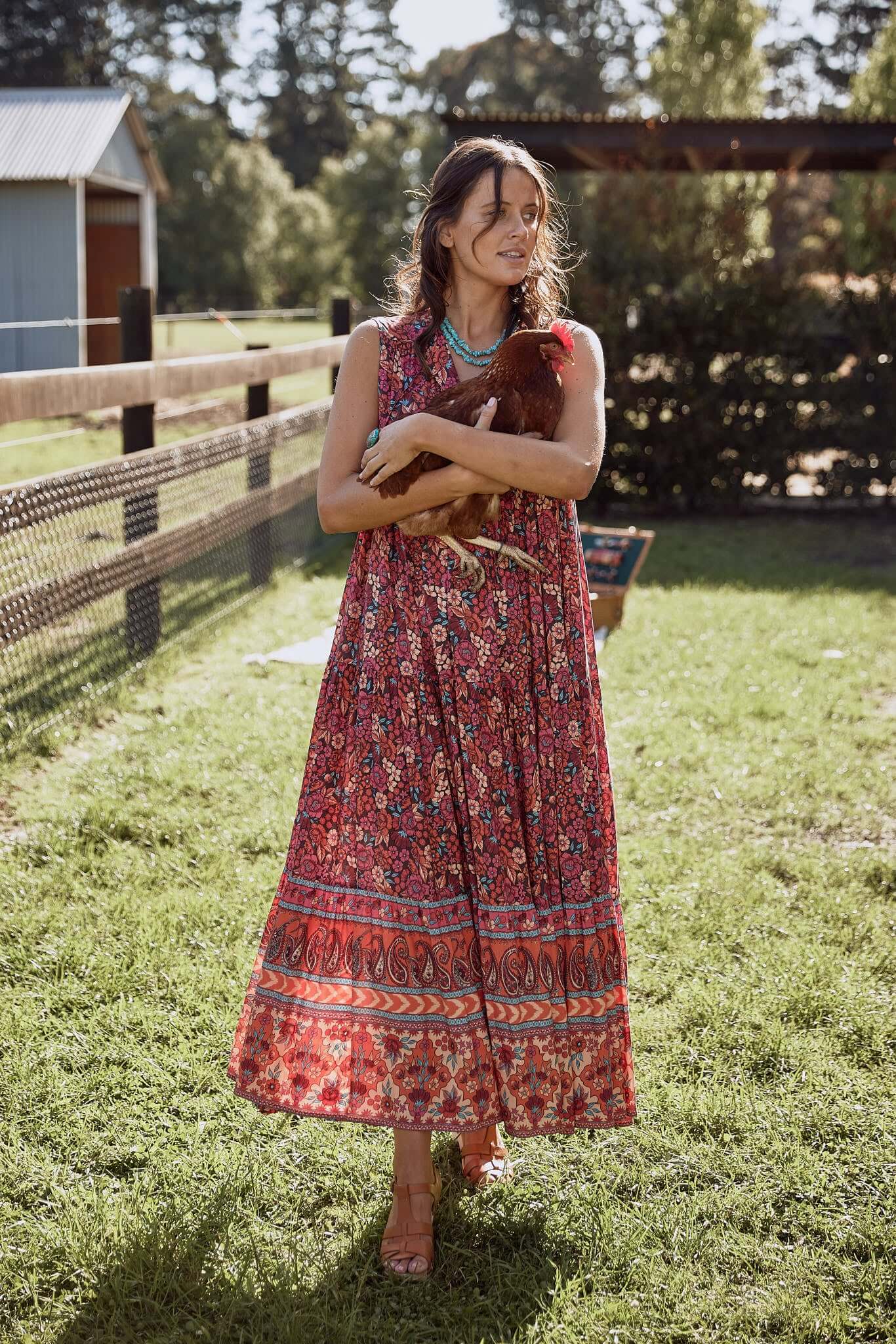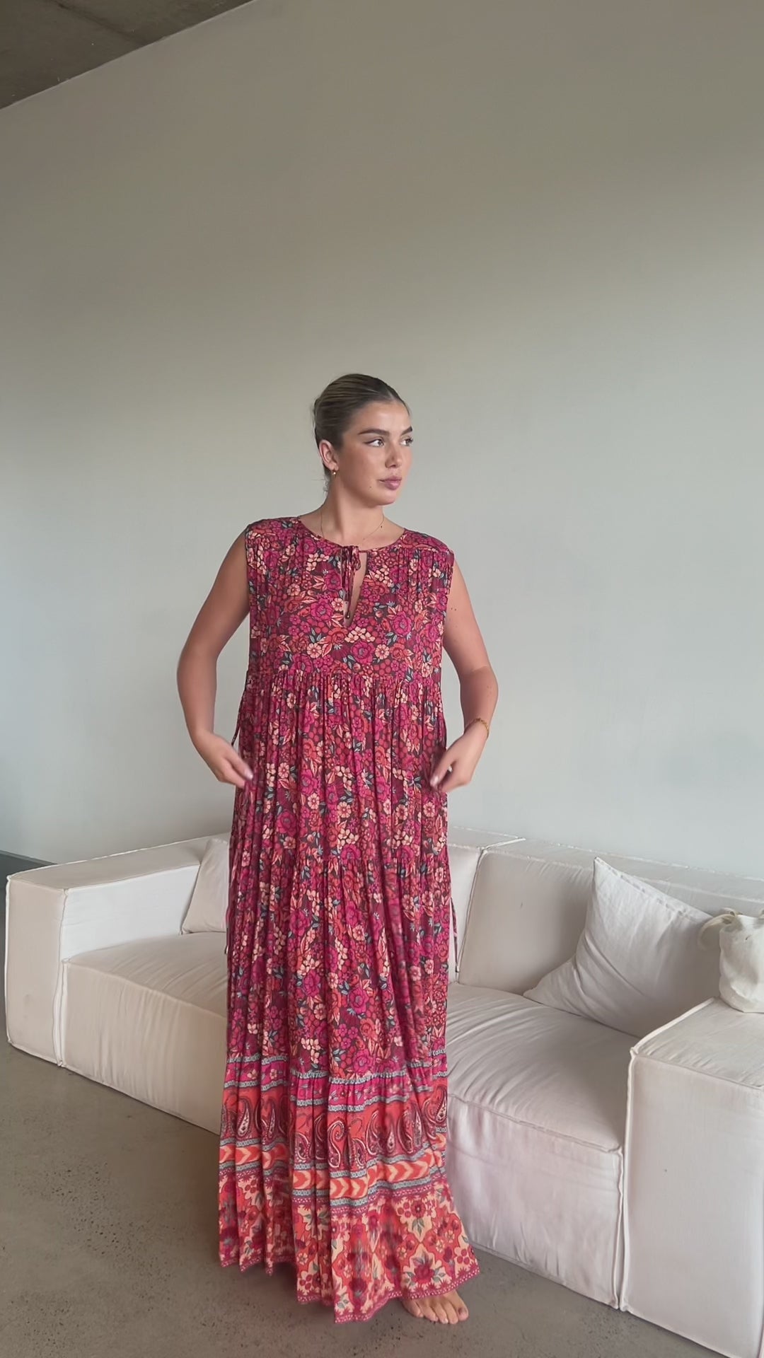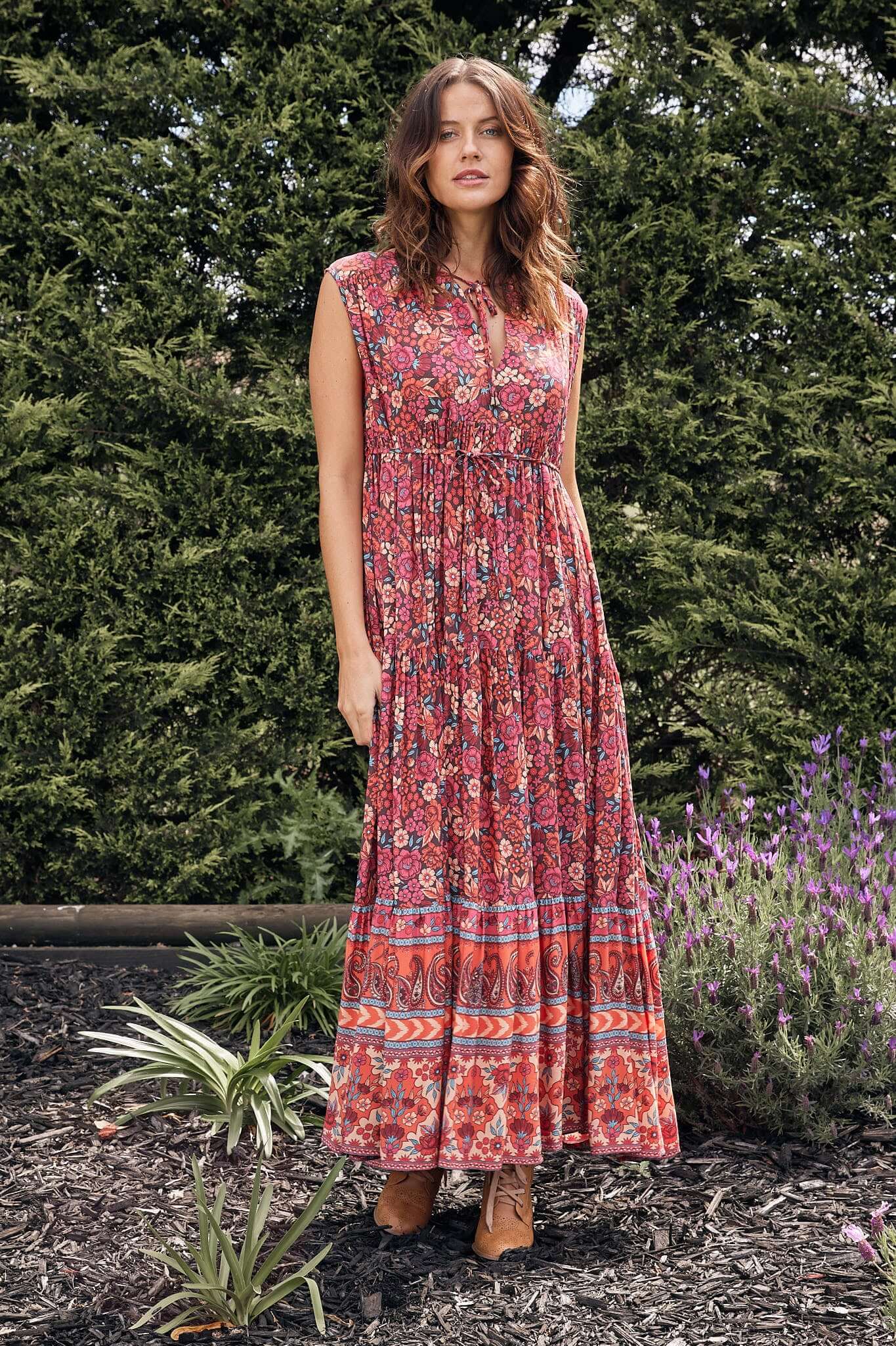- Multiple tiers gathered skirt for a full and voluminous flow