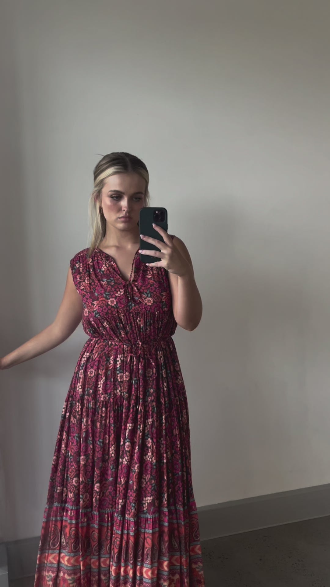 - Self-fabric waist tie (no elastic) for fitted bodice